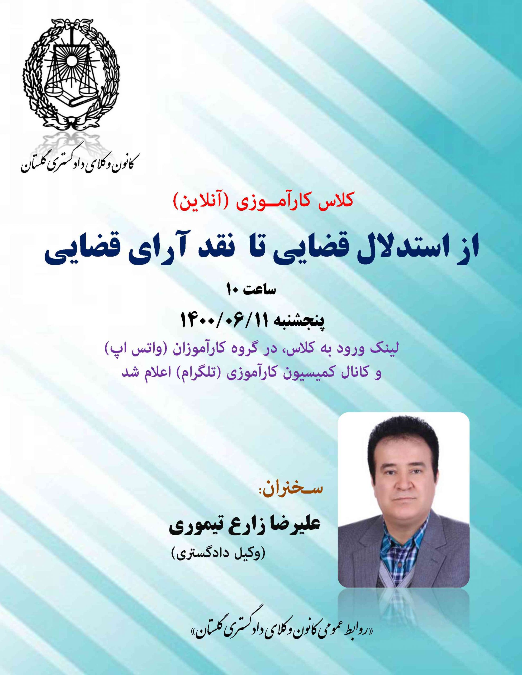 آنلاین/ کلاس کارآموزی/ از استدلال قضایی تا نقد آرای قضایی ـ پنجشنبه ۱۴۰۰/۰۶/۱۱ ساعت ۱۰