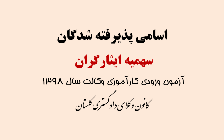اسامی پذیرفته شدگان “سهمیه ایثارگران” آزمون ورودی کارآموزی وکالت سال ۱۳۹۸ کانون وکلای گلستان