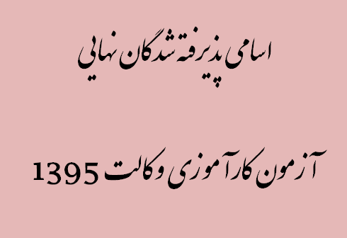 اسامی نهایی پذیرفته شدگان آزمون کارآموزی وکالت سال 1395 کانون وکلای دادگستری گلستان اعلام شد. پذیرفته شدگان 95   نحوه و برنامه زمانبندی ثبت نام قبول شدگان: قبول شدگان باید به ترتیب ردیف اعلام...