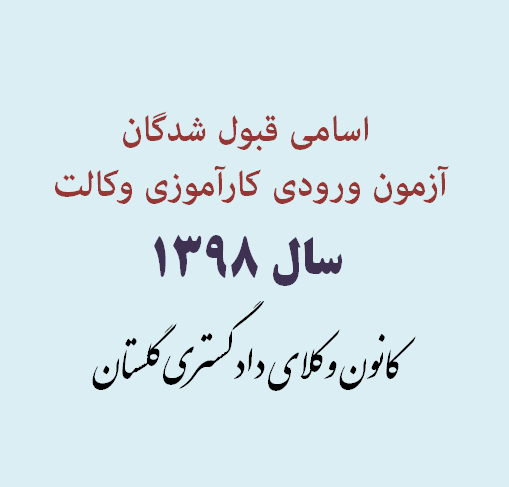 با تصمیم هیأت مدیره کانون وکلای دادگستری گلستان اسامی پذیرفته شدگان سهمیه آزاد آزمون ورودی کارآموزی وکالت سال 1398 این کانون به شرح ذیل اعلام می شود؛