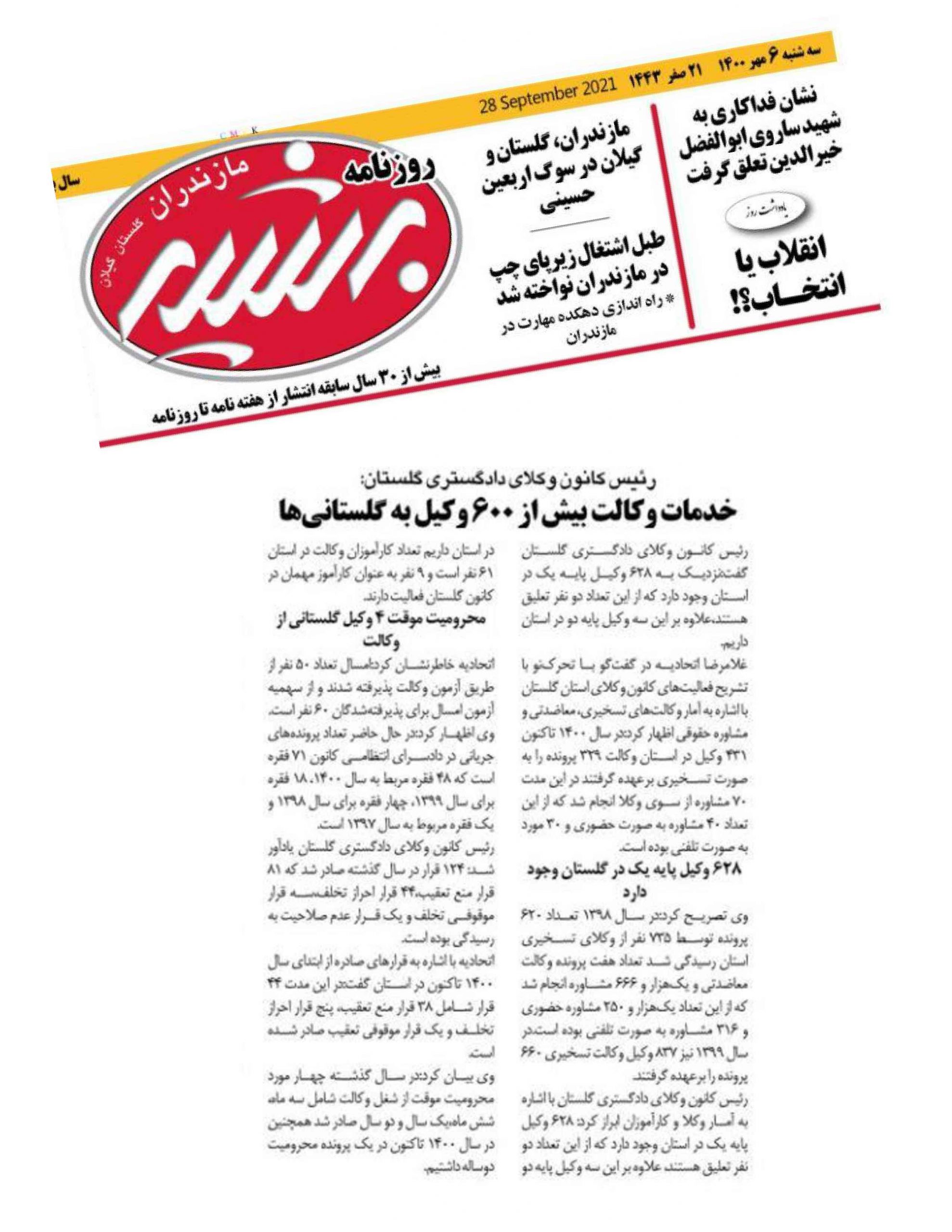 بازتاب نشست رسانه ای مورخ ۱۴۰۰/۰۶/۳۱ رییس کانون وکلای دادگستری گلستان در نشریات و پایگاه های خبری
