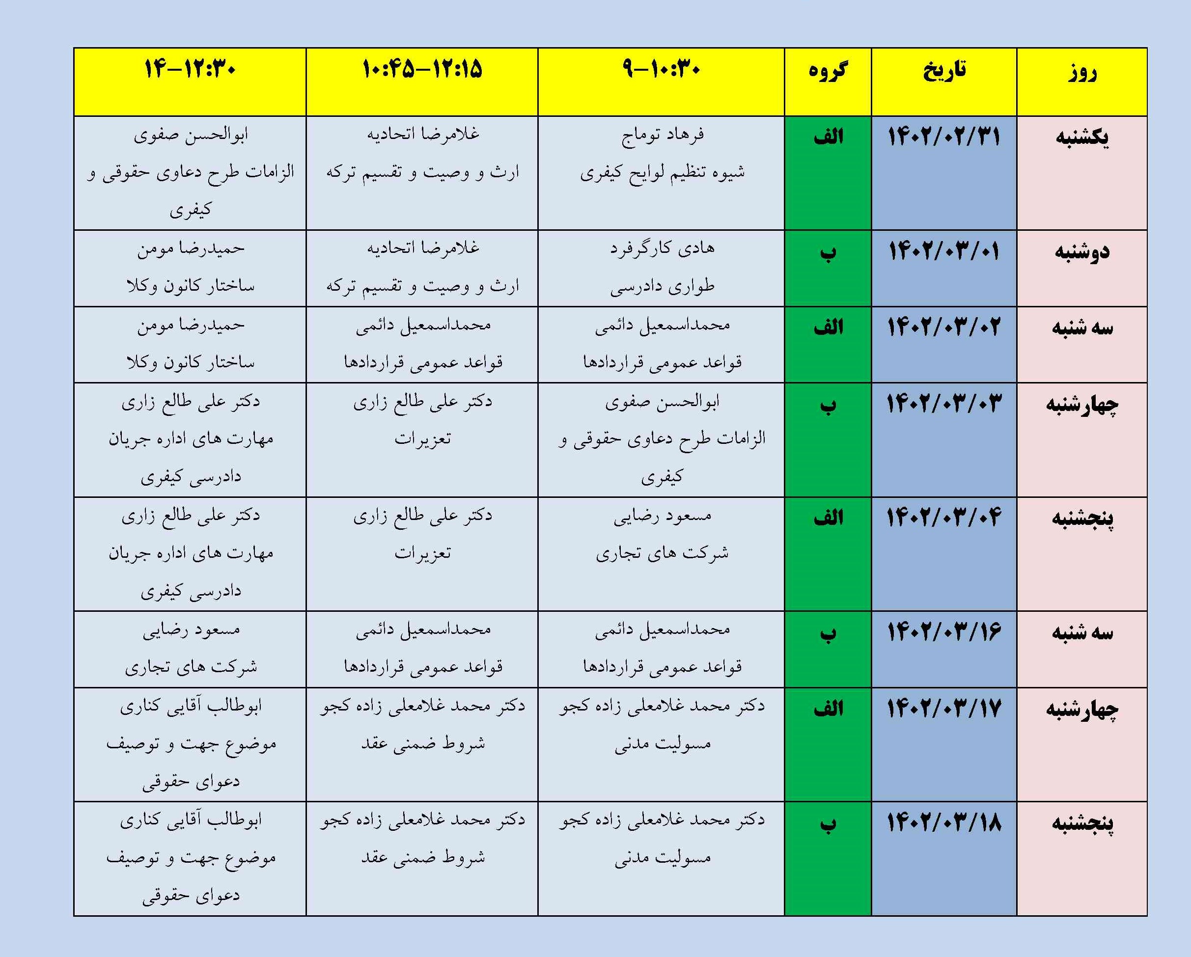 برنامه کارگاه های دو هفته پایانی دوره دو ماهه کارآموزان ورودی ۱۴۰۱ (نوبت پذیرش ۱۴۰۰)