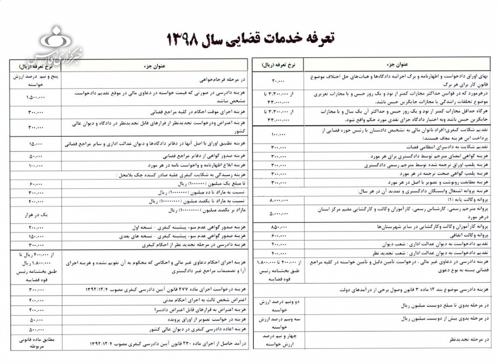 تعرفه خدمات قضایی در سال ۹۸ اعلام شد + جدول