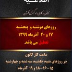 نظر به تمدید محدودیت های ستاد مبارزه با کرونا، ساعت کار کانون وکلای دادگستری گلستان از روز شنبه ۱۳۹۹/۰۹/۲۲ تا پنجشنبه ۱۳۹۹/۰۹/۲۷ از ۸ تا ۱۳ می...