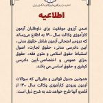 گفتنی است، جشن استقلال کانون وکلای دادگستری و شانزدهمین دوره تحلیف کارآموختگان وکالت گلستان، روز پنجشنبه ۱۴۰۰/۱۲/۰۵ با حضور تعدادی از مسئولان استانی، وکلا و کارآموزان وکالت، قضات و… در تالار فخرالدین اسعد گرگانی برگزار خواهد شد.