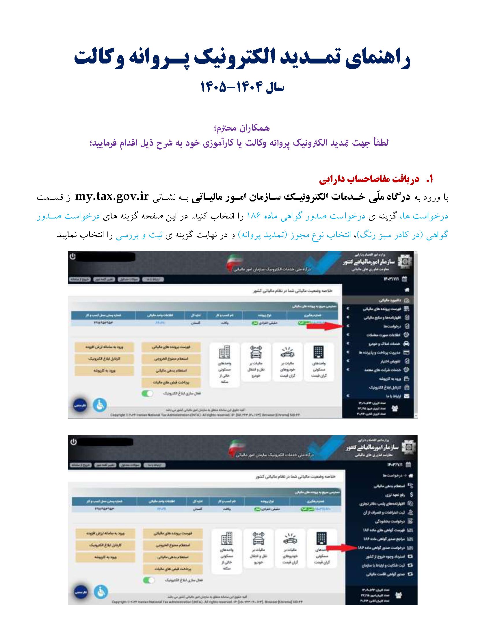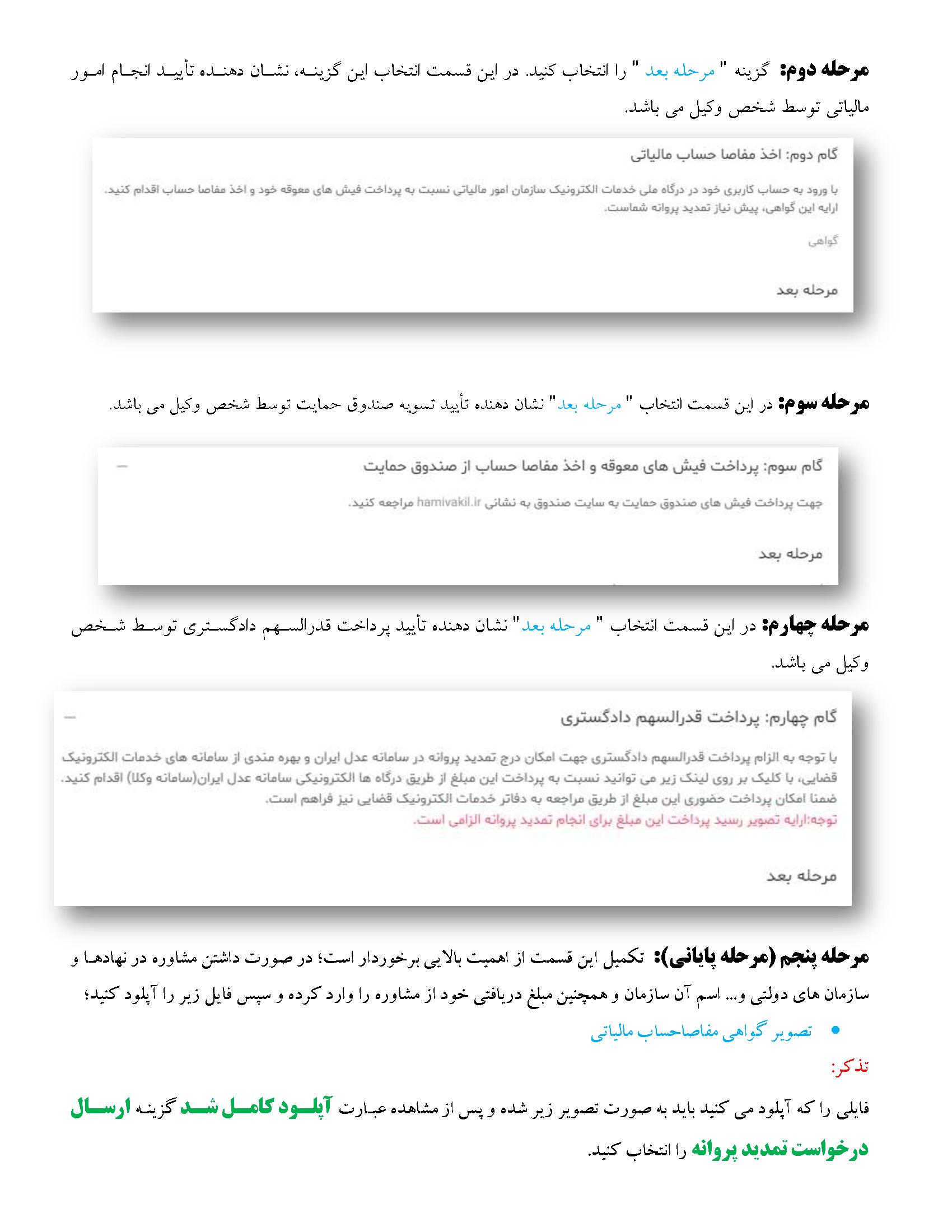 - تمدید پروانه وکالت بدون مفاصاحساب مالیاتی امکانپذیر نمی باشد.