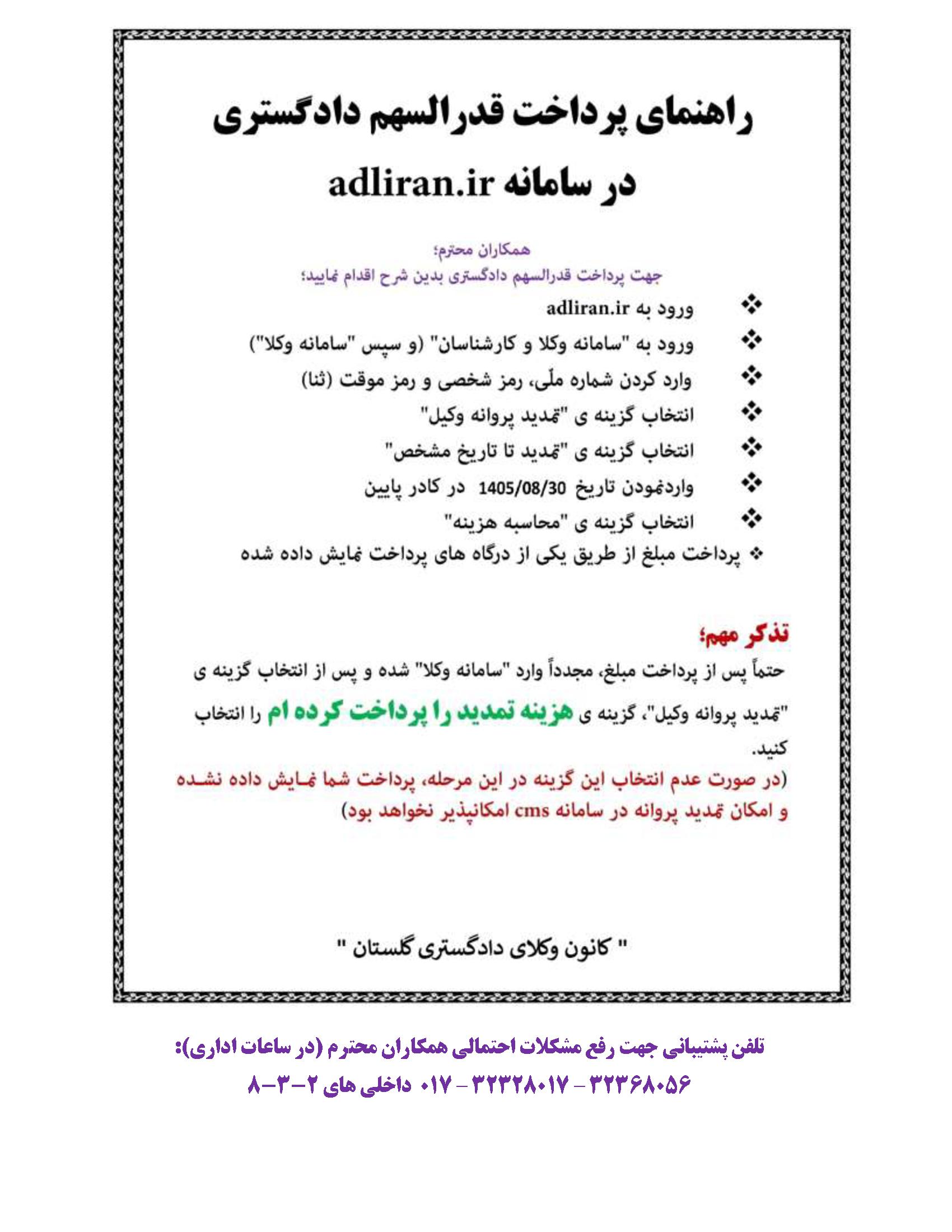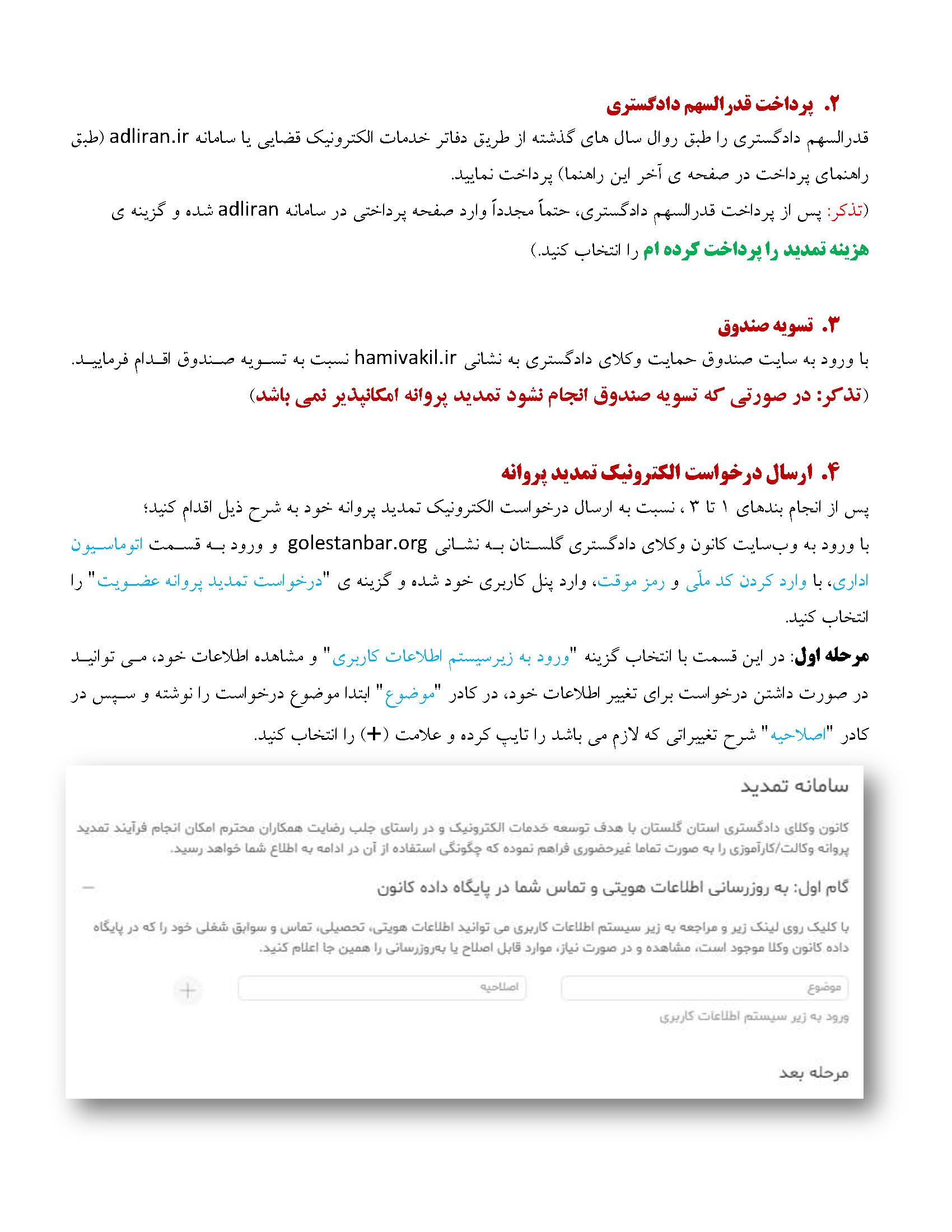 اطلاعیه راهنمای تمدید الکترونیک پروانه وکالت