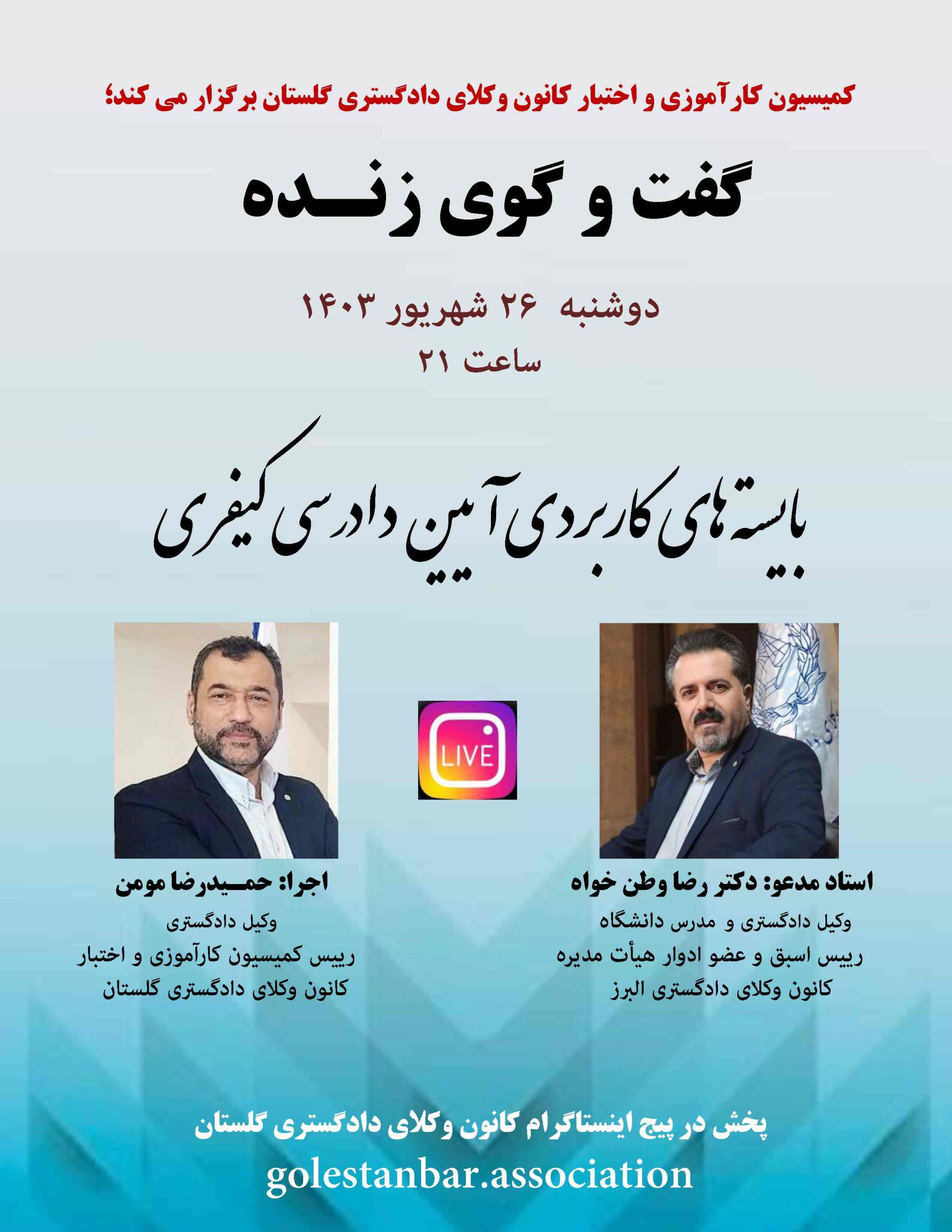 گفت و گوی زنده/ بایسته های کاربردی آیین دادرسی کیفری ـ دوشنبه 1403/06/26 ساعت 21