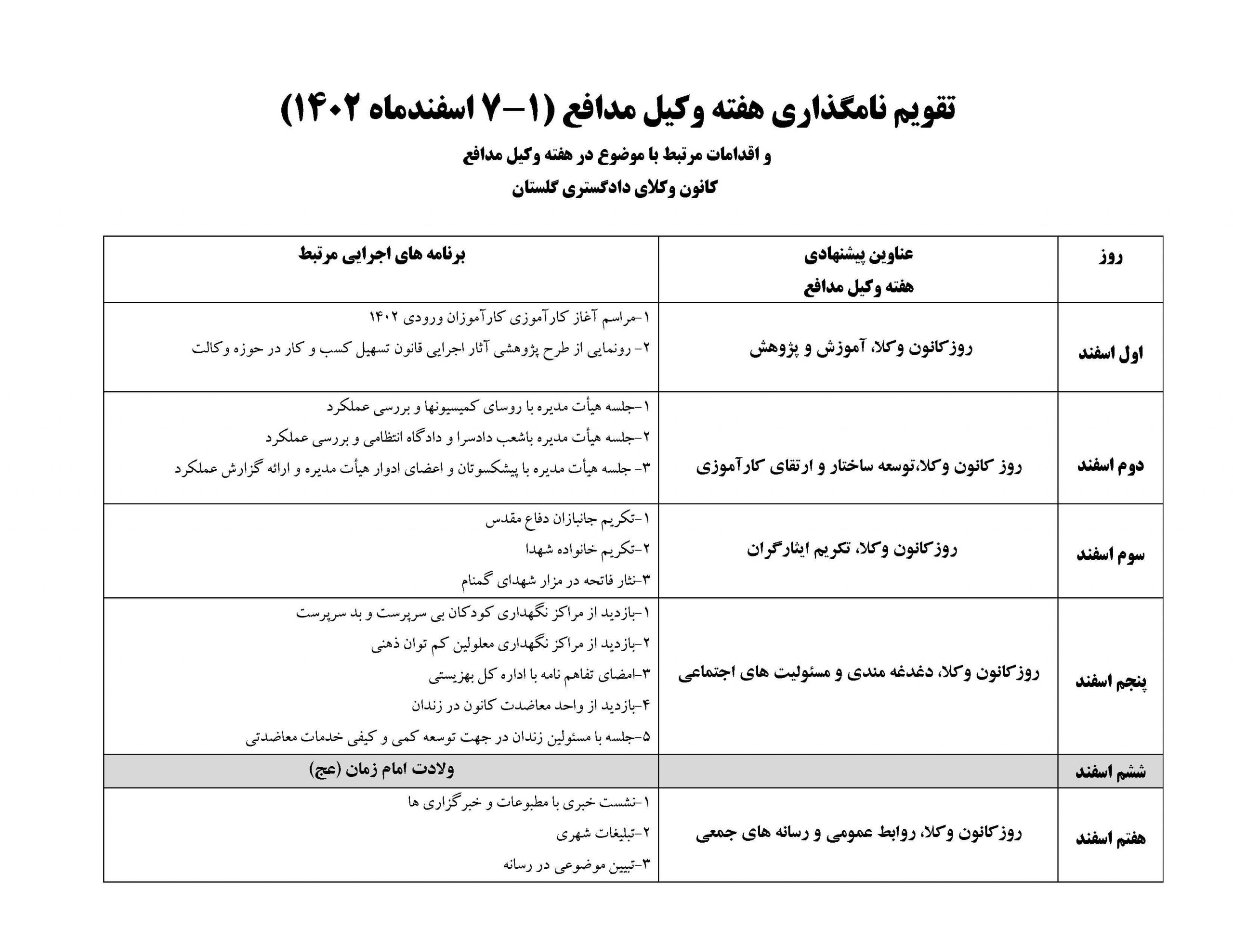 نامگذاری هفته وکیل مدافع (۱-۷ اسفندماه ۱۴۰۲) و اقدامات مرتبط با موضوع در این هفته