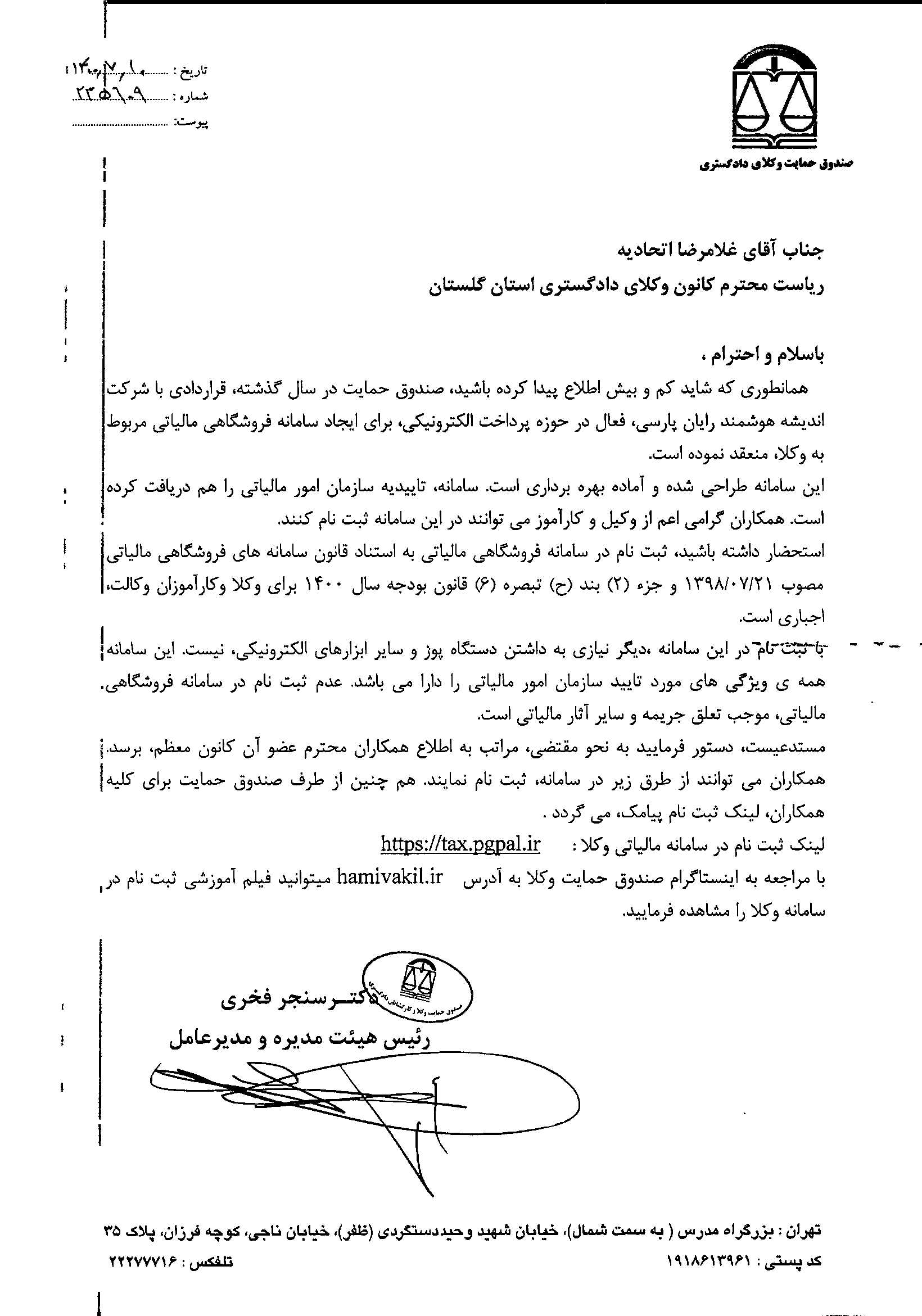 وکلا و کارآموزان در سامانه فروشگاهی مالیاتی ثبت نام کنند