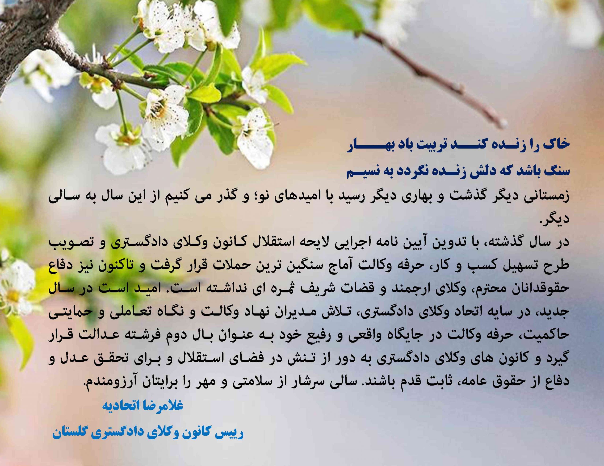 پیام تبریک رییس کانون وکلای دادگستری گلستان به مناسبت عید نوروز