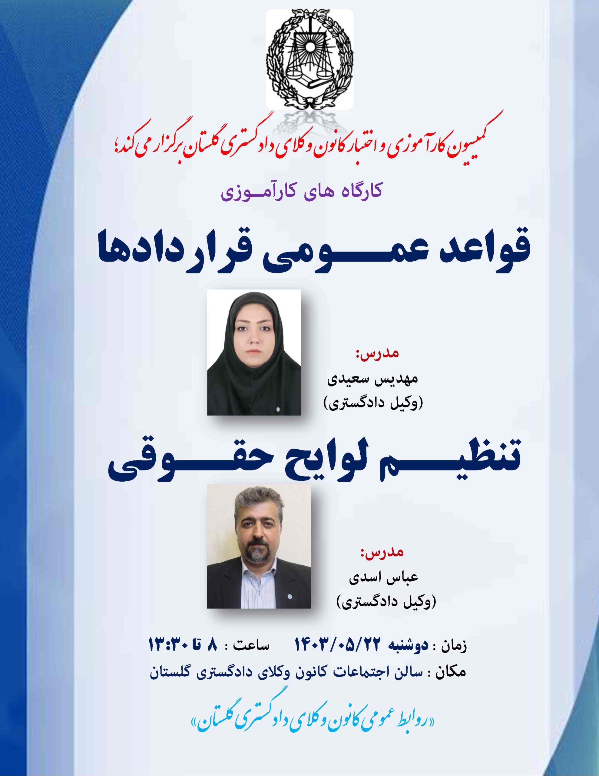 کارگاه های کارآموزی/ قواعد عمومی قراردادها ـ تنظیم لوایح حقوقی ـ 22 مرداد 1403