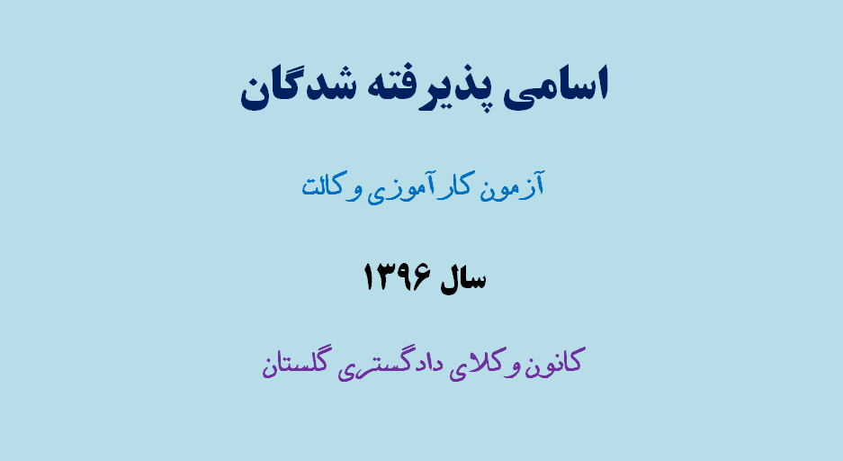 04 بهمن اطلاعیه/ اسامی پذیرفته شدگان آزمون ورودی کارآموزی وکالت سال 1396 کانون وکلای دادگستری گلستان + جزییات ثبت نام