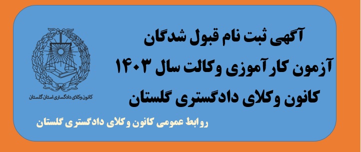 17 بهمن اطلاعیه زمان بندی مراجعه قبول شدگان آزمون کارآموزی وکالت 1403 کانون وکلای دادگستری گلستان جهت انجام استعلامات قانونی
