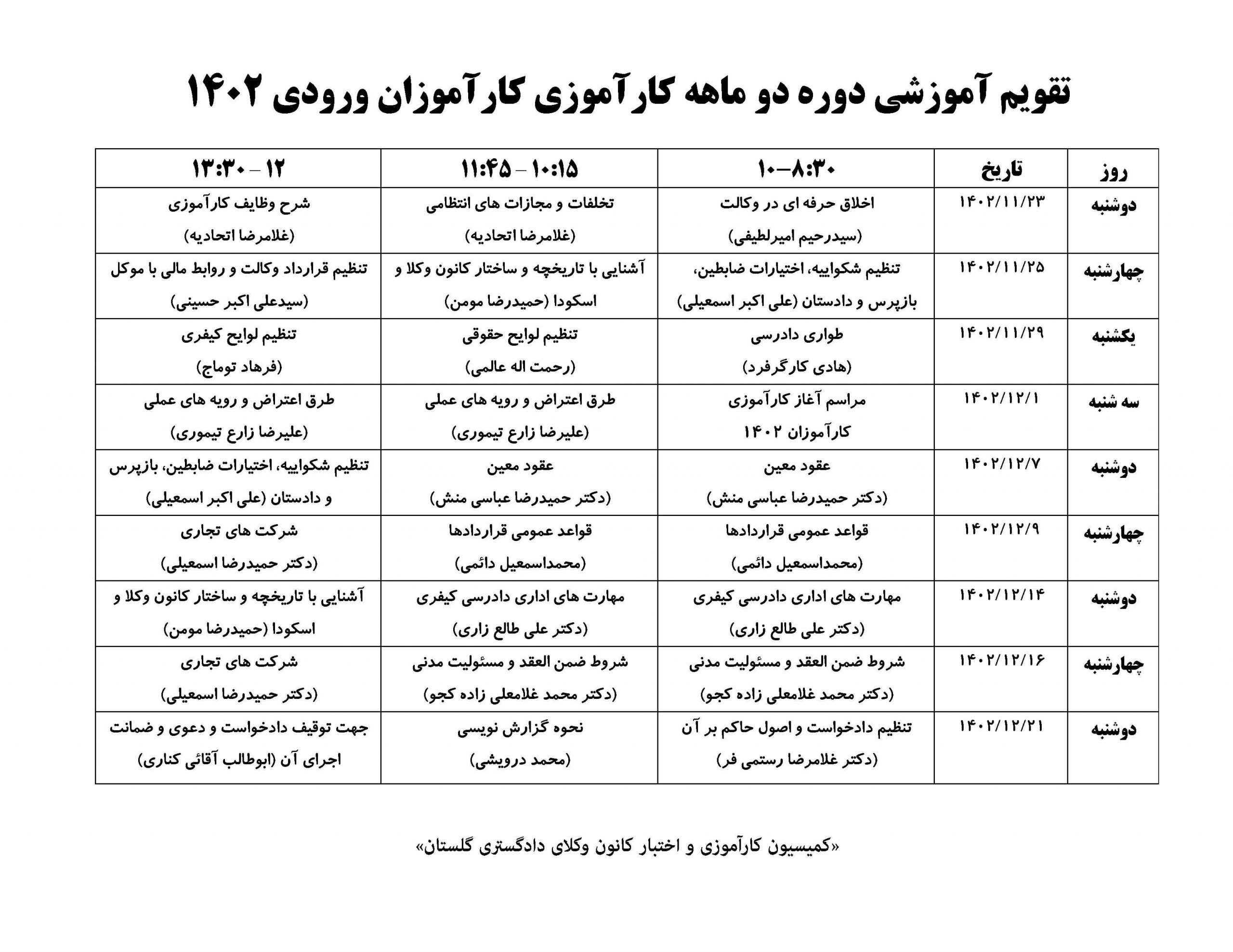 03 خرداد اطلاعیه تکمیلی آزمون کارآموزی وکالت کانونهای وکلای دادگستری ایران سال ۱۴۰۱ (مربوط به نوبت پذیرش سال ۱۴۰۰)