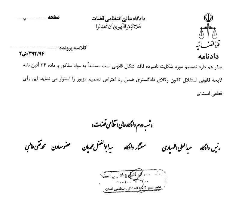 دادنامه دادگاه عالی انتظامی قضات درخصوص ضرورت کسب حداقل نمره در آزمون ورودی وکالت