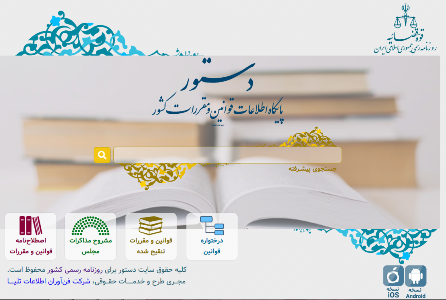 اپلیکشن “دستور” / شامل قوانین و مقررات، آراء و نظرات، قوانین تنقیح شده و مذاکرات مجلس